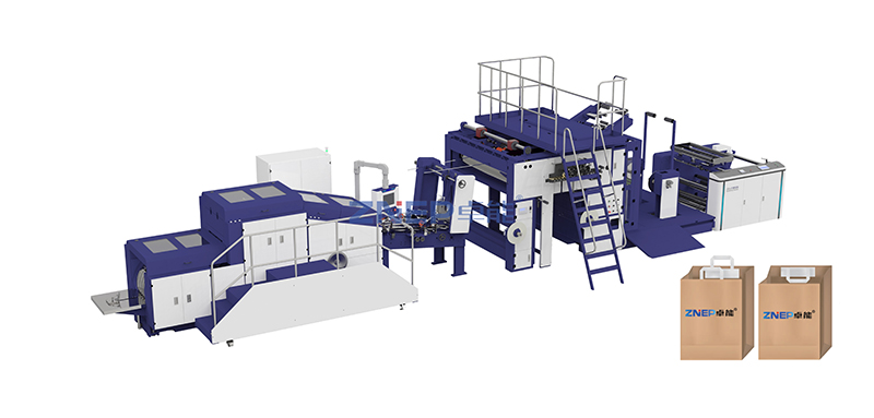 تُستخدم هذه المعدات لإنتاج أكياس ورقية محمولة مع حبل مسطح (قابل للطي الداخلي والقلب الخارجي). يتم تقطيع الورق الخام لفائف الورق إلى حبل مسطح وشرائح من ورق الأنابيب ولصقها بواسطة مقبض اليد. من خلال نظام النقل ، يتم نقل حمل اليد المحضر إلى الموضع المحدد للحقيبة ، ثم يتم إرسالها إلى آلة تشكيل الكيس الورقي من خلال موضع ضغط الإرسال ، ثم تقوم آلة تشكيل الكيس الورقي بطلاء الورق الخام المعلق باليد بالغراء الجانبي ، وتشكيل الأنبوب ، والقطع ، وعلامات البادئة ، والغراء السفلي ، وتشكيل قاع الكيس وإخراجهم من الكيس ، يتم الانتهاء من العملية بأكملها في وقت واحد ، ويتم تحقيق الإنتاج الآلي بالكامل حقًا ، قادرة على توفير تكاليف العمالة بشكل فعال.